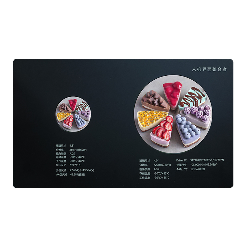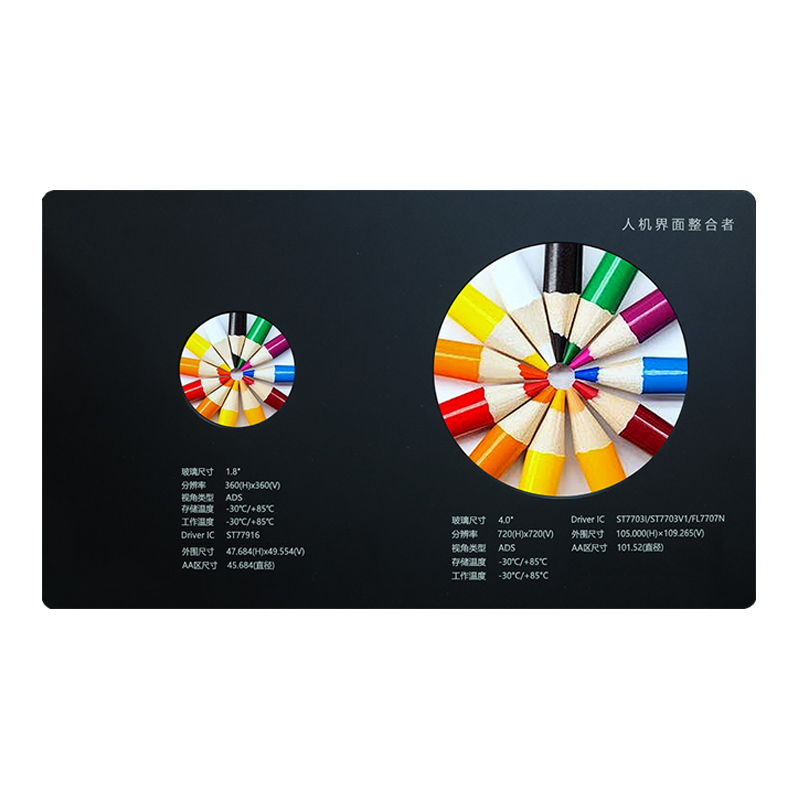 Denne 4,0-tommers TFT sirkulære LCD-skjermen er designet for AI kjæledyrroboter og bilinstrumentklynger. Den høye oppløsningen på 720 x 720 kombinert med ADS-teknologi gir fantastiske bilder. Motstandsdyktig mot ekstreme temperaturer (-30℃ til +85℃) og tilbyr flere driver-IC-alternativer, demonstrerer den stor tilpasset skjermfleksibilitet. Det store 101,52 mm sirkulære AA-området sikrer intuitiv informasjonsvisning. Denne høyytelses LCD-skjermen er den ideelle løsningen for å forbedre interaksjon mellom mennesker og maskiner.