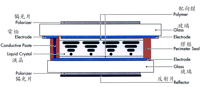 Kjernestrukturen til LCD-skjermer består av flere nøyaktig laminerte materialer, inkludert polarisatorer, elektroder, ledende pasta, flytende krystall, justeringsfilmer, glasssubstrater, perimeterforseglinger og reflektorer. Hvert materiallag har unike funksjoner: